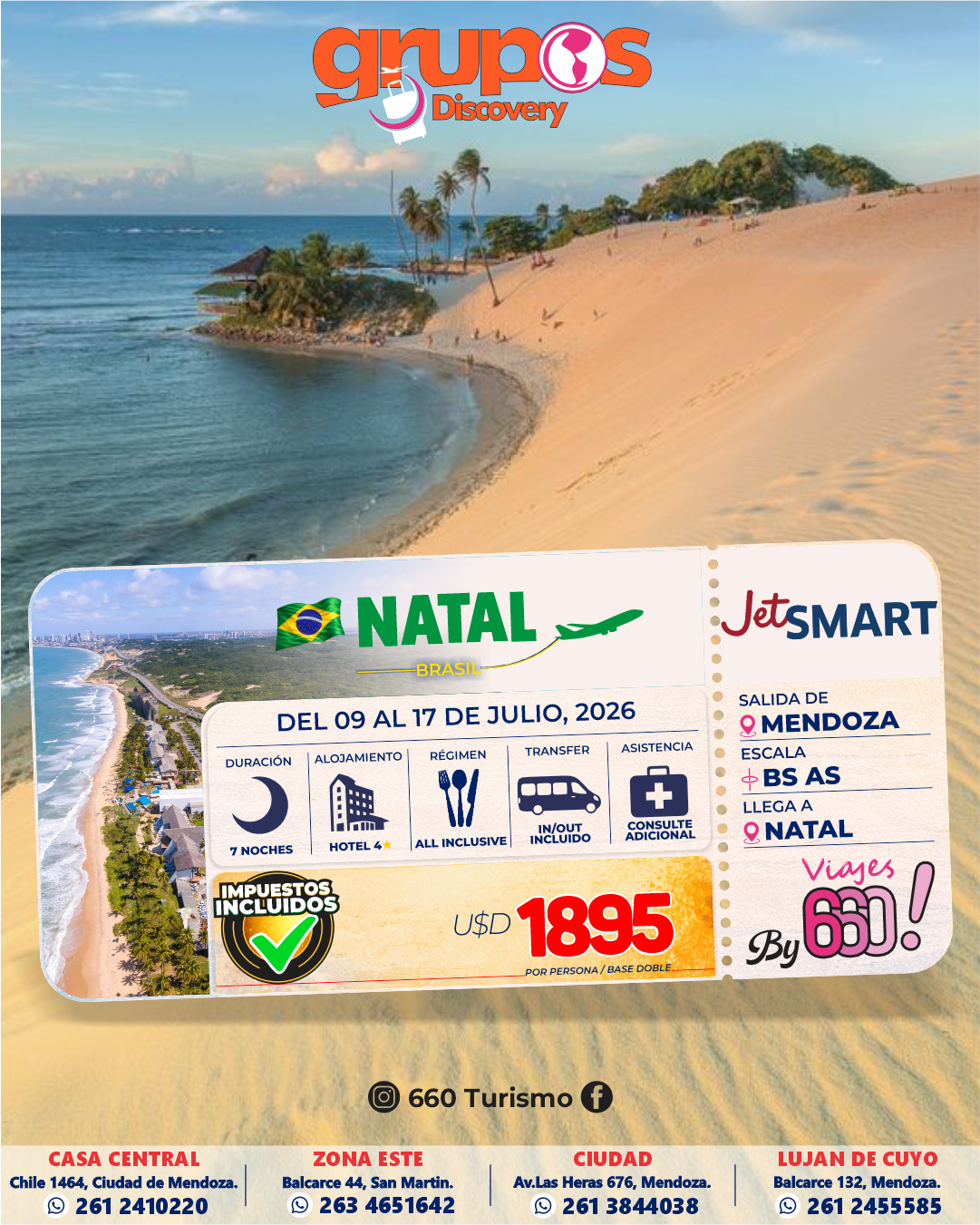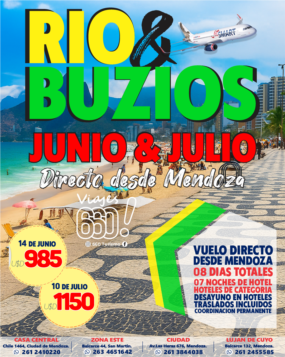 Paquetes destacados Cyber OFERTA DIA DE LA MUJER CON CATEGORÍA 👌☀️ Cyber OFERTA FINDE EN SAN RAFAEL 🌸 🦋 Cyber OFERTA SAN BERNARDO 9 NOCHES ESPECIAL☀️👙 Cyber OFERTA FIN DE SEMANA EN SAN RAFAEL🌸 🦋 Cyber OFERTA IGUAZU JULIO EN BUS DESDE MENDOZA 🚍☀️ Cyber OFERTA IGUAZU VACACIONES DE JULIO ✈️☀️ Cyber OFERTA IGUAZU EN SEMANA SANTA🦋☀️ Cyber OFERTA MERLO EN FEBRERO 👙🚌 Cyber OFERTA IGUAZÚ MARZO, MAYO Y JUNIO☀️✈️🦋 Cyber OFERTA ABRIL 2026 RIO + BUZIOS ✈️😎 Cyber OFERTA BUZIOS ENERO 2026 ✈️😎 Cyber OFERTA RIO + BUZIOS MARZO ✈️ Cyber OFERTA 📍MARZO: CAMBORIU + CATARATAS Cyber OFERTA MICHES 2026✈️🍹🥂 Cyber OFERTA CANCUN 2026✈️🍍🥂 Cyber OFERTA PUNTA CANA 2026✈️🍍🥂 Nuestra flota Cyber OFERTA JetSMART Airlines Cyber OFERTA Bus PISO ELEVADO Cyber OFERTA Bus CAMA TOTAL! Cyber OFERTA Bus Mix Charter SEMI-CAMA ¿Necesitas ayuda o asistencia?. Hablemos ahora +54 9 2612 41-0220
