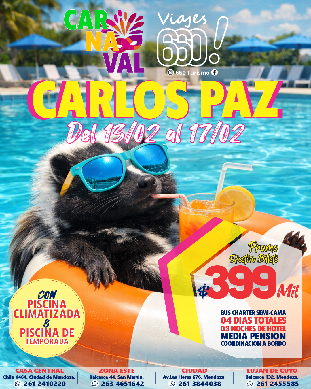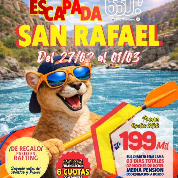 Paquetes destacados Cyber OFERTA FINDE EN SAN RAFAEL 🌸 🦋 Cyber OFERTA SAN BERNARDO 9 NOCHES ESPECIAL☀️👙 Cyber OFERTA FIN DE SEMANA EN SAN RAFAEL🌸 🦋 Cyber OFERTA IGUAZU JULIO EN BUS DESDE MENDOZA 🚍☀️ Cyber OFERTA IGUAZU VACACIONES DE JULIO ✈️☀️ Cyber OFERTA IGUAZU EN SEMANA SANTA🦋☀️ Cyber OFERTA MERLO EN FEBRERO 👙🚌 Cyber OFERTA IGUAZÚ MARZO, MAYO Y JUNIO☀️✈️🦋 Cyber OFERTA ABRIL 2026 RIO + BUZIOS ✈️😎 Cyber OFERTA BUZIOS ENERO 2026 ✈️😎 Cyber OFERTA RIO + BUZIOS MARZO ✈️ Cyber OFERTA 📍MARZO: CAMBORIU + CATARATAS Cyber OFERTA MICHES 2026✈️🍹🥂 Cyber OFERTA CANCUN 2026✈️🍍🥂 Cyber OFERTA PUNTA CANA 2026✈️🍍🥂 Cyber OFERTA BAYAHIBE 2026✈️🍍🥂 Nuestra flota Cyber OFERTA JetSMART Airlines Cyber OFERTA Bus PISO ELEVADO Cyber OFERTA Bus CAMA TOTAL! Cyber OFERTA Bus Mix Charter SEMI-CAMA ¿Necesitas ayuda o asistencia?. Hablemos ahora +54 9 2612 41-0220