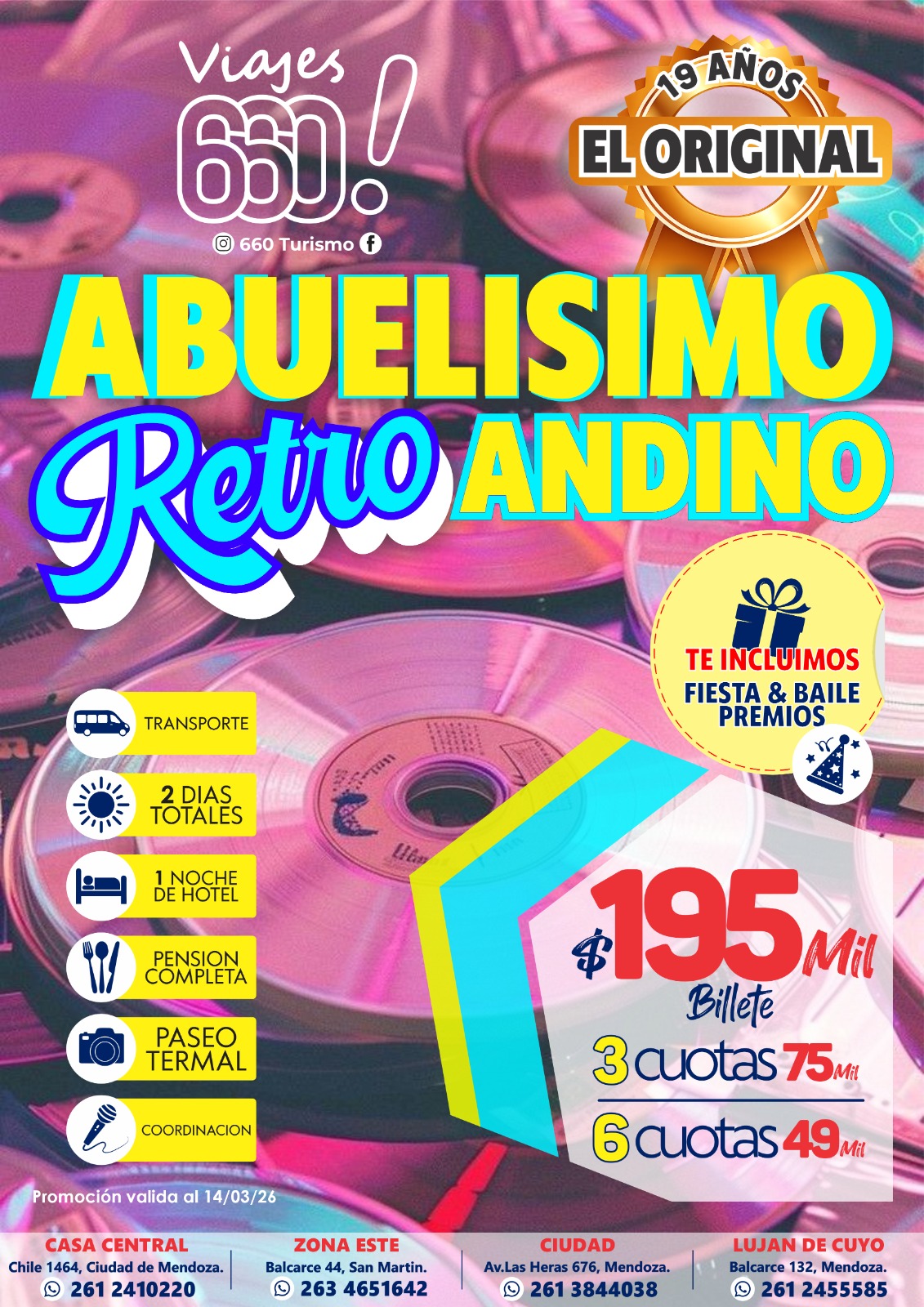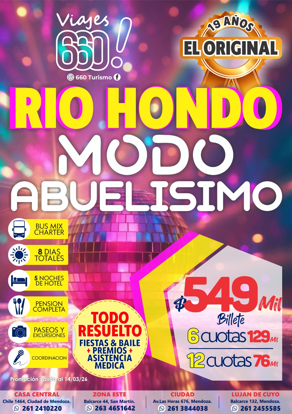 Paquetes destacados Cyber OFERTA ABUELISIMO EN RIO HONDO JULIO Cyber OFERTA NORTE AEREO JULIO VACACIONES 🌵✈️ Cyber OFERTA RIO HONDO JUNIO 2DA QUINCENA JUNIO Cyber OFERTA LAVALLE PUESTO DIAZ MAYO 🚌🧉 Cyber OFERTA NORTE AEREO MAYO Y JUNIO Cyber OFERTA 25 DE MAYO EN EL VALLE DE UCO!! 🚌🧉 Cyber OFERTA ABUELISIMO RETRO MAYO 🚌☀️ Cyber OFERTA RIO HONDO ABUELISIMO 2026 🚍 😎 Cyber OFERTA IGUAZU JULIO EN BUS DESDE MENDOZA 🚍☀️ Cyber OFERTA IGUAZU VACACIONES DE JULIO ✈️☀️ Cyber OFERTA IGUAZU EN SEMANA SANTA🦋☀️ Cyber OFERTA MICHES 2026✈️🍹🥂 Cyber OFERTA CANCUN 2026✈️🍍🥂 Cyber OFERTA PUNTA CANA 2026✈️🍍🥂 Cyber OFERTA BAYAHIBE 2026✈️🍍🥂 Cyber OFERTA PLAYA DEL CARMEN 2026 🌴🥂✈️ Nuestra flota Cyber OFERTA JetSMART Airlines Cyber OFERTA Bus PISO ELEVADO Cyber OFERTA Bus CAMA TOTAL! Cyber OFERTA Bus Mix Charter SEMI-CAMA ¿Necesitas ayuda o asistencia?. Hablemos ahora +54 9 2612 41-0220