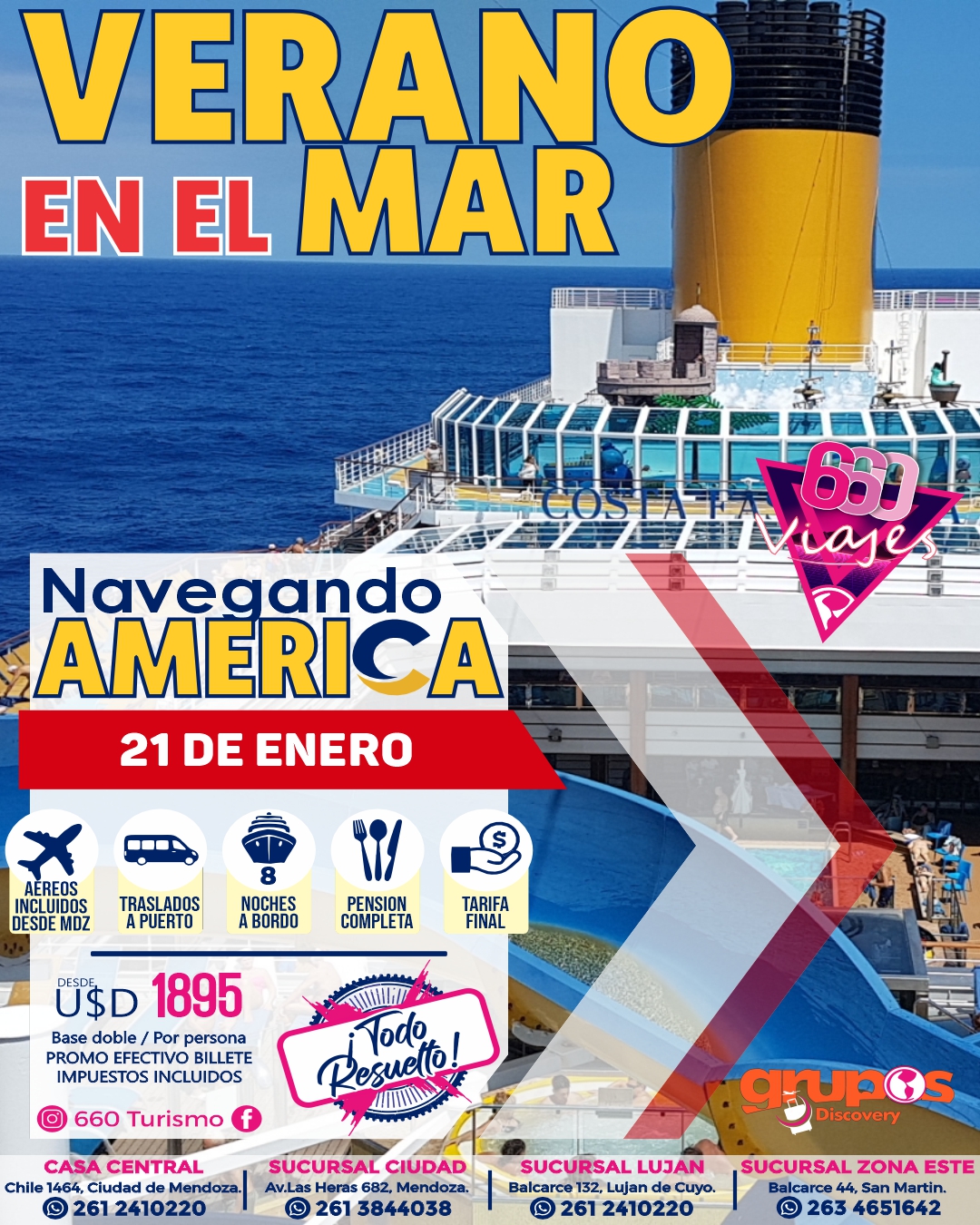 📍Incluye Pensión Completa a bordo con servicio de media tarde incluida: Desayuno + Almuerzo + Merienda + Cena y exclusivo Buffete de media noche.